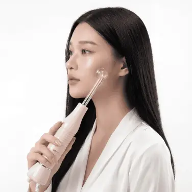 Компактный импульсный массажёр имеет в комплекте 4 насадки. Это специальные стеклянные электроды разной формы, наполненные неоном или воздухом. Девайс можно использовать 2-мя способами: контактным (т.е. касаясь насадкой кожи) и бесконтактным (когда электрод находится на расстоянии 1-4 мм от кожи). Первый метод эффективен, например, при лечении целлюлита и варикоза, второй способен обеззараживать кожу (без химических повреждений), помогая бороться с угревой сыпью и ускорять заживление ран.